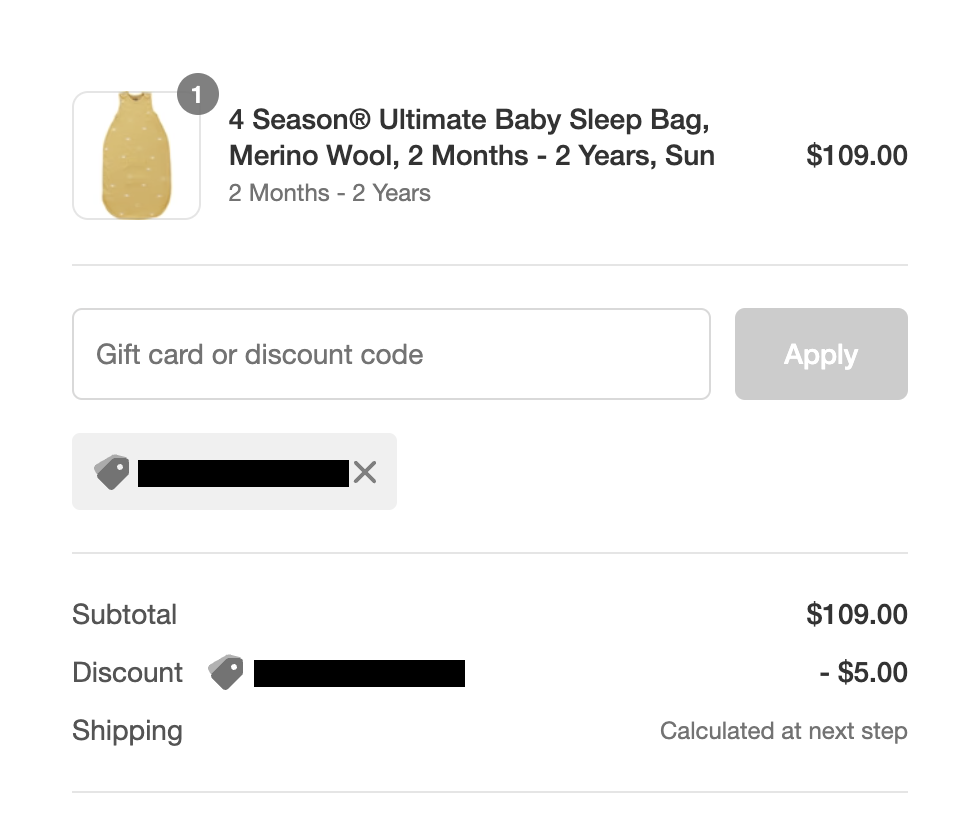 Choose the reward you would like to redeem by selecting 'Get reward'. This box will then generate a discount code that you can apply at checkout, just like the example below:
